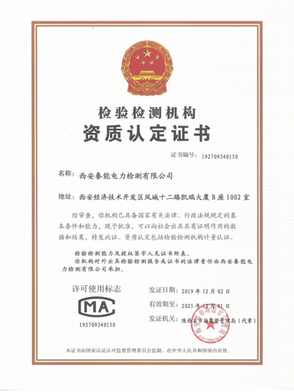 檢驗(yàn)檢測(cè)機(jī)構(gòu)資質(zhì)認(rèn)定證書(CMA證書)